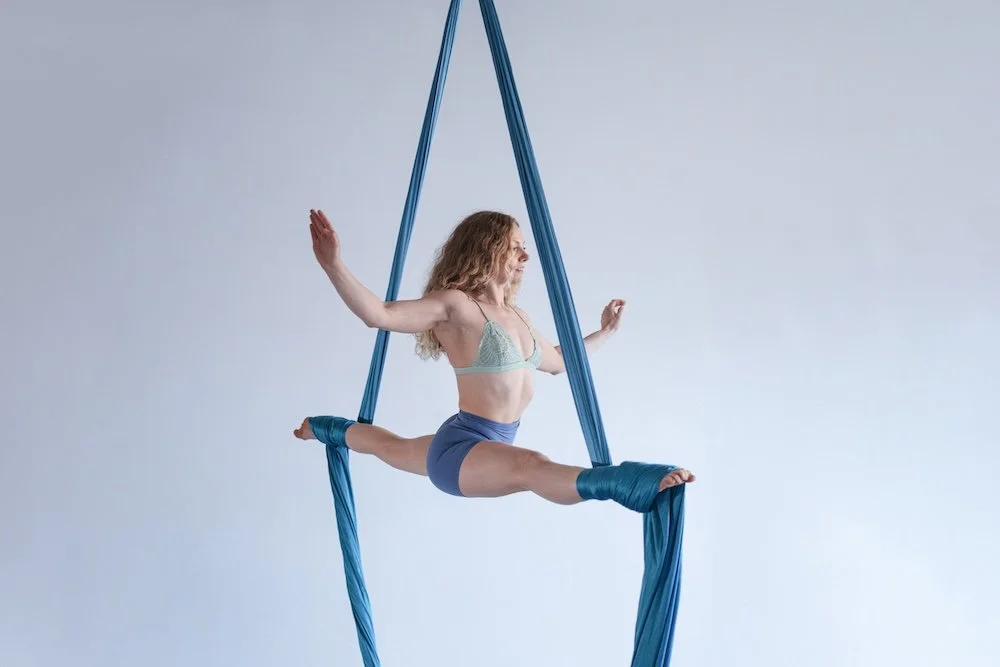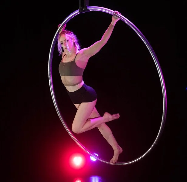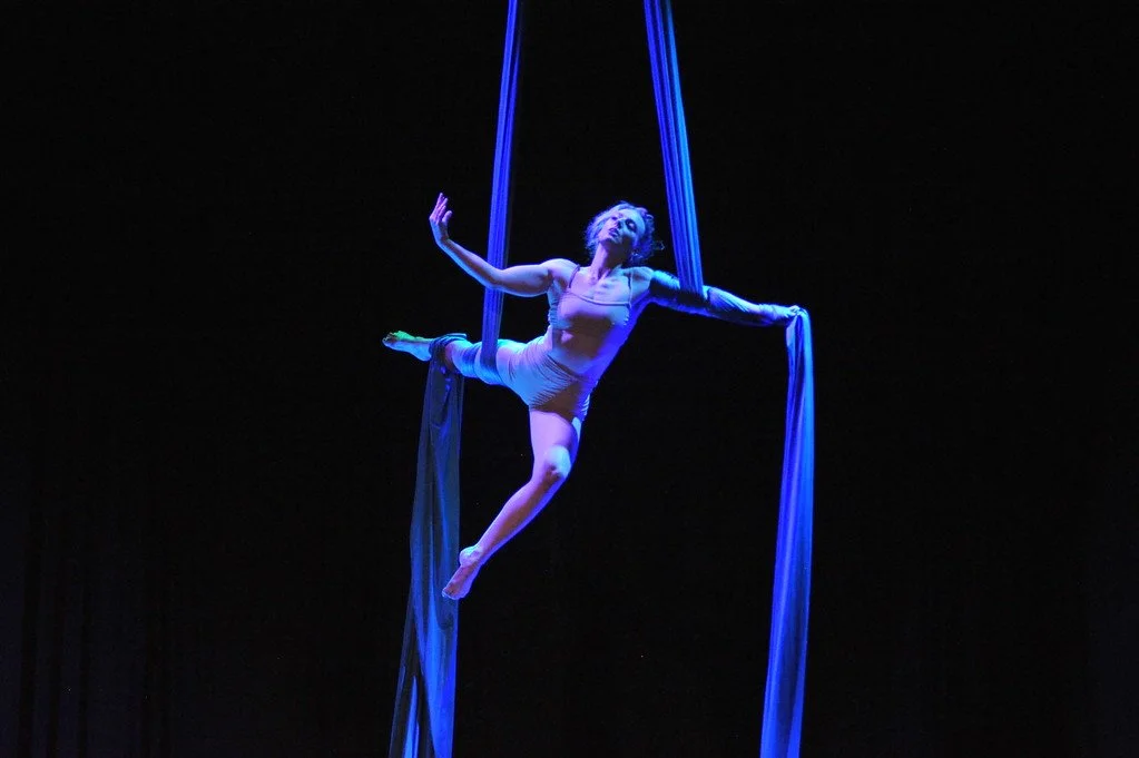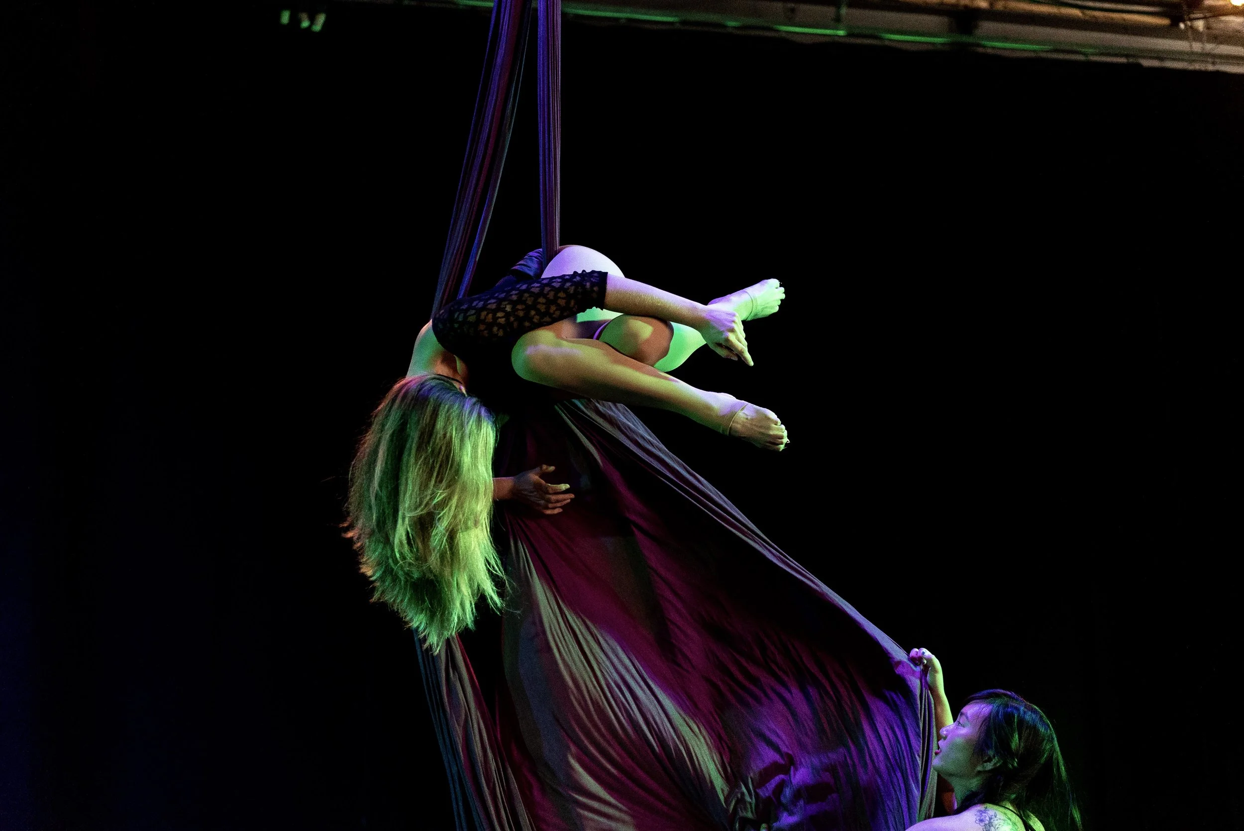I first discovered my love of acrobatics through Gymnastics at an early age. Specializing in Aerial Silks, I’m forever curious by the puzzles that the vertical plane offers and aspire to seamlessly and dynamically flow through the windows they highlight.